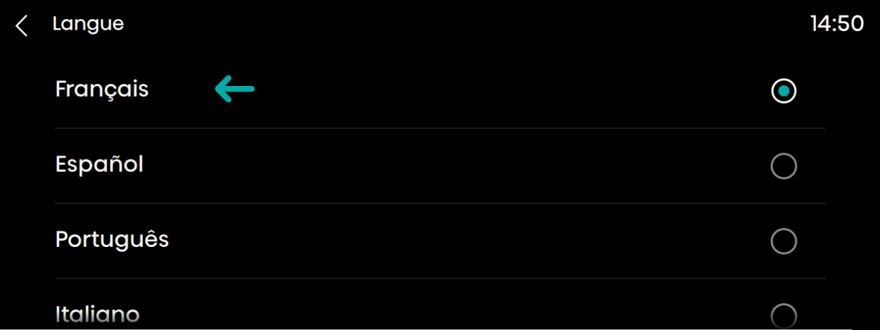 Lors de la première utilisation, l'appareil vous propose immédiatement de régler la langue. La langue souhaitée ne figure pas dans la liste ? Dans ce cas, il est conseillé de choisir temporairement une autre langue, par exemple l'anglais, et d'effectuer d'abord une mise à jour du logiciel.