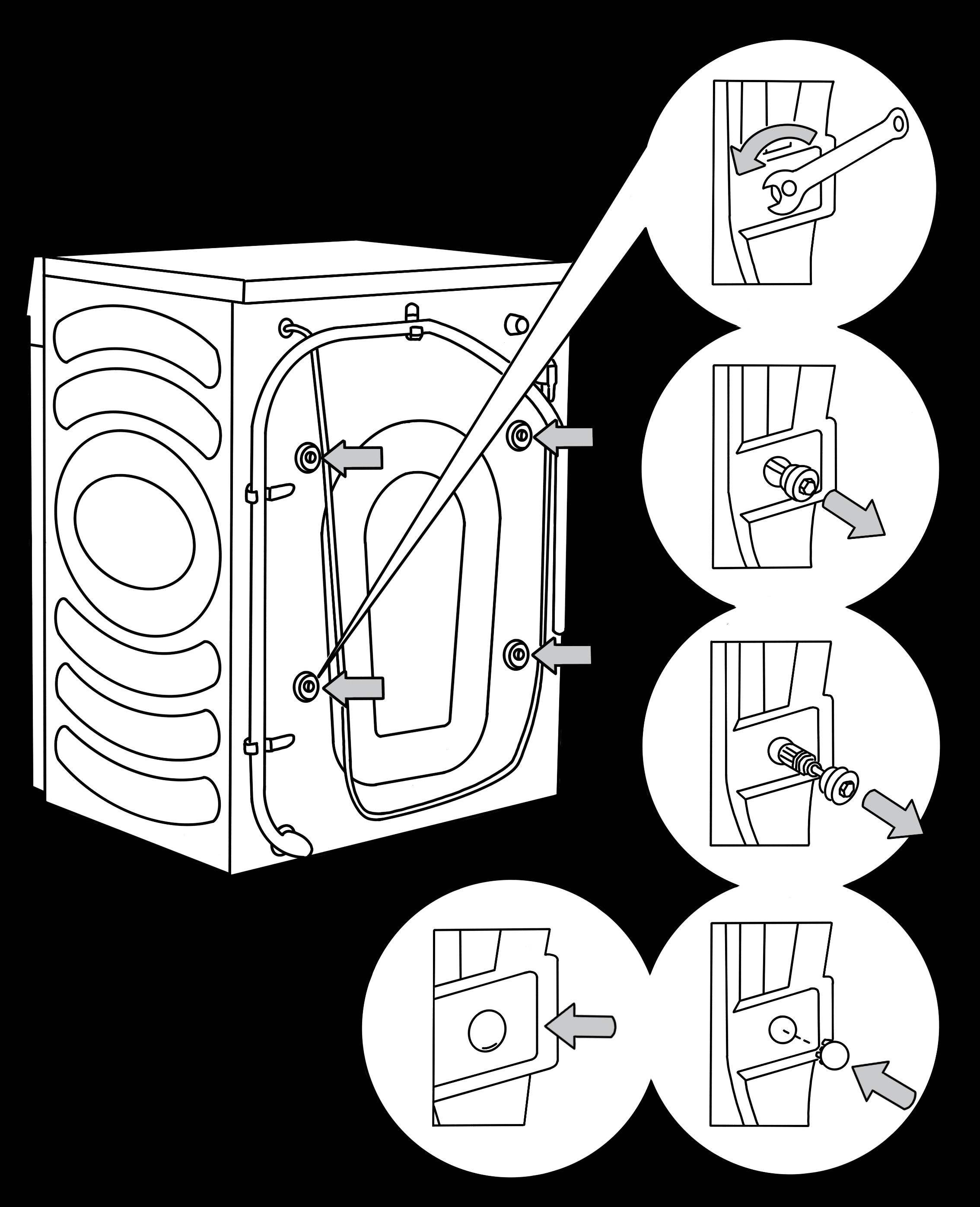 Let er vóór het eerste gebruik van de was-droogcombinatie op dat de transportschroeven en/of- stangen verwijderd zijn. Een toestel dat bij de eerste inschakeling geblokkeerd is, kan beschadigd raken. Bij dergelijke schade is de garantie niet van toepassing. Raadpleeg de handleiding van jouw was-droogcombinatie voor de correcte procedure om deze transportschroeven en/of -stangen te verwijderen.