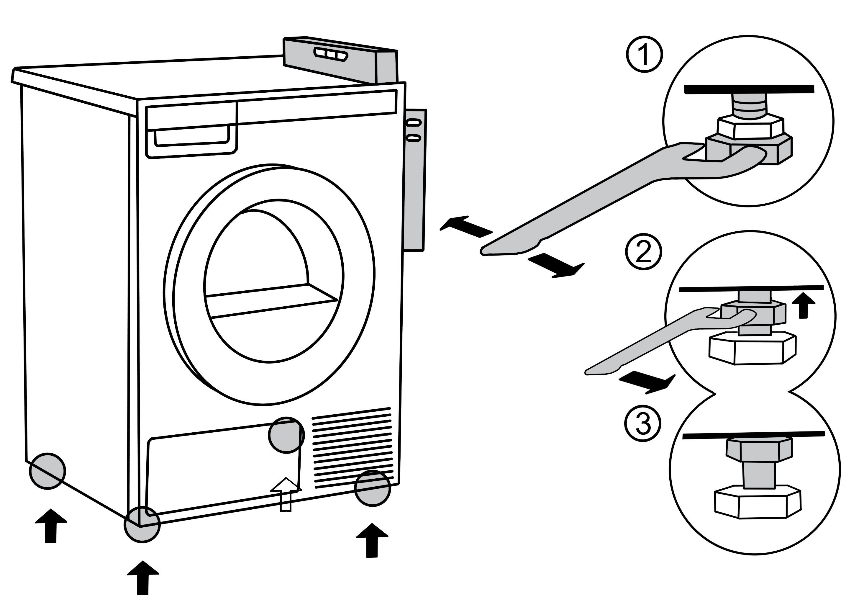 - Stel de pootjes van de droogkast goed in en draai de contramoer aan tot het eind om geluid, vibraties en het bewegen van de droogkast zoveel mogelijk te verminderen.