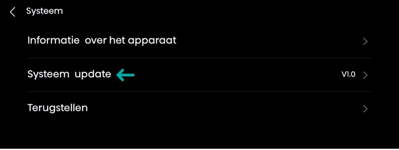 Voor het uitvoeren van de software update moet het toestel verbonden zijn met een wifi-netwerkverbinding. Dit is eventueel al verbonden tijdens de setup bij het eerste gebruik van het toestel. Is dit niet het geval? Zie hier dan de instructies voor verbinden met het wifi-netwerk.
